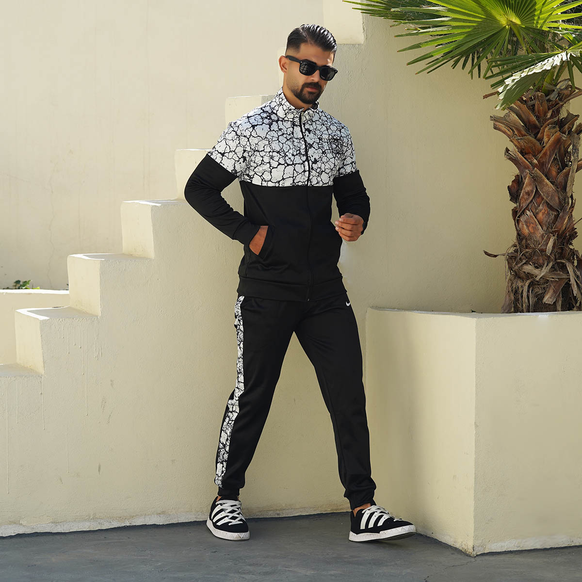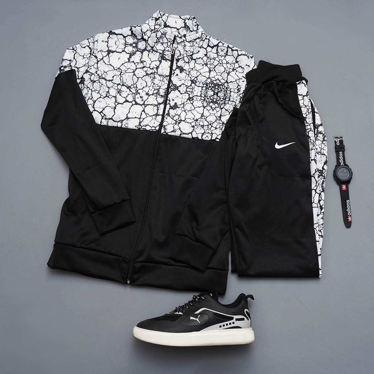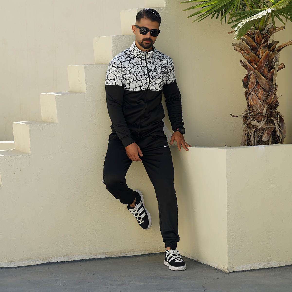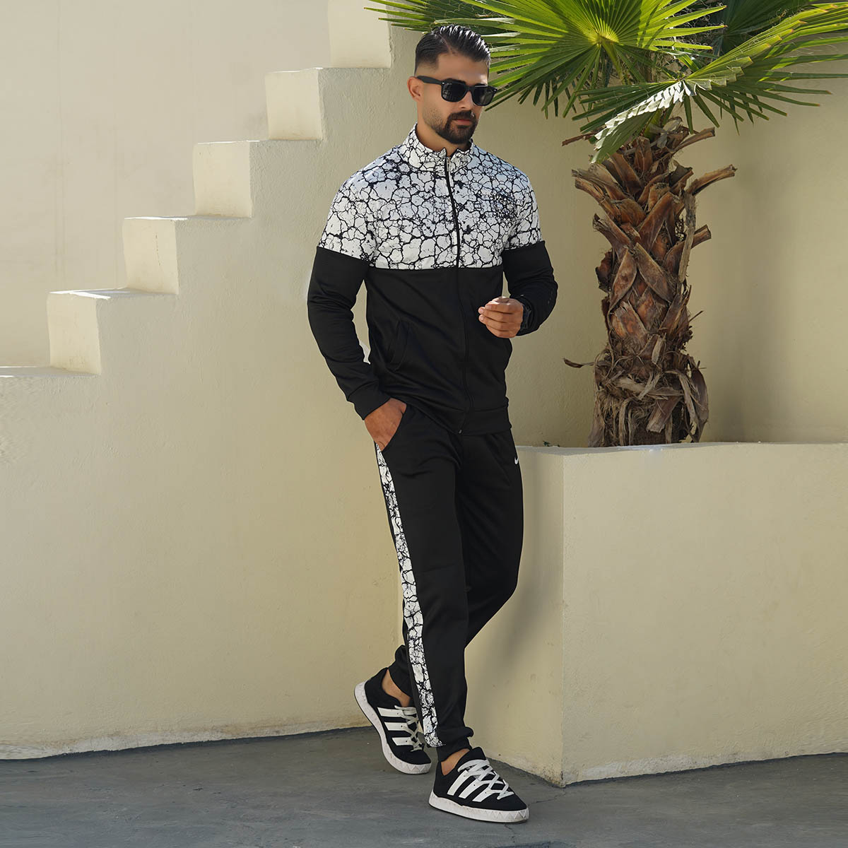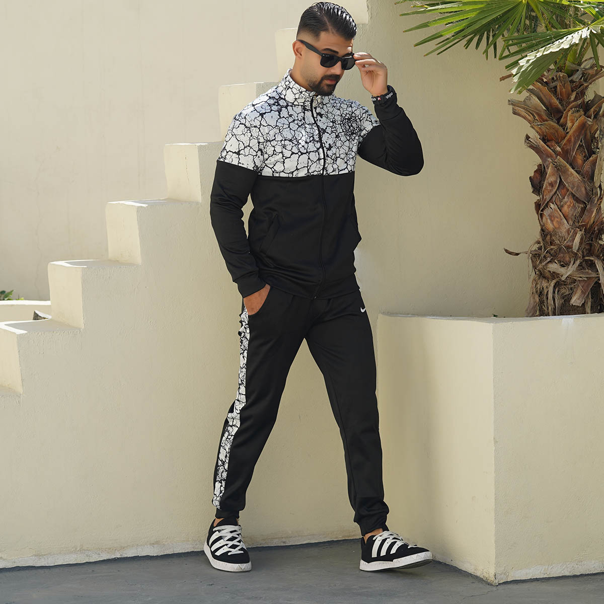 ست سوییشرت شلوار طرح خط خطی مشکی مردانه مدل Umo