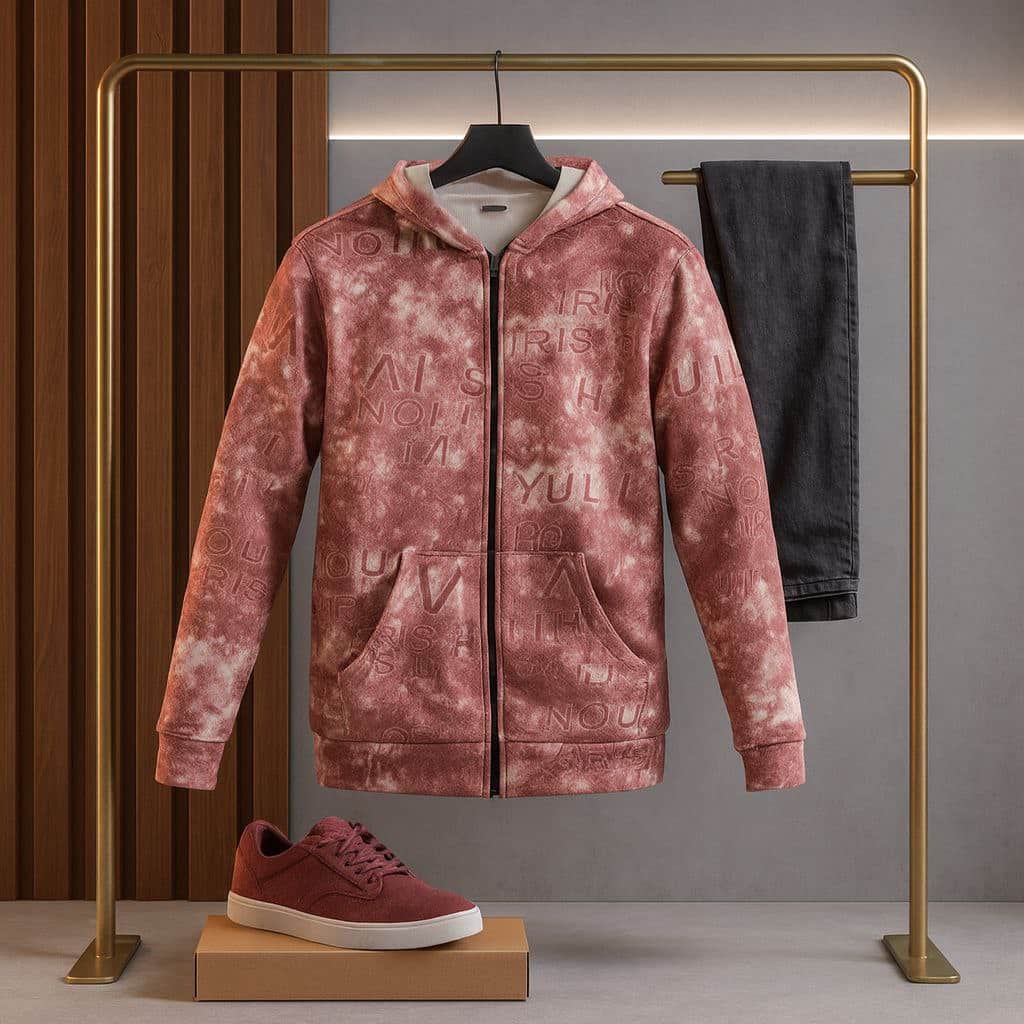 سوییشرت طرحدار مردانه قرمز مدل Roham